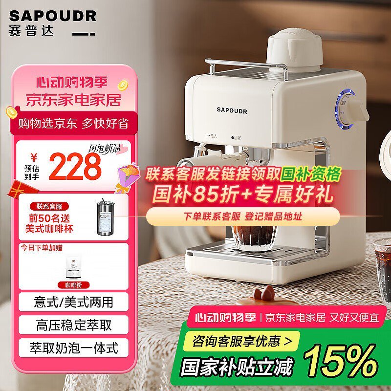 赛普达EA39咖啡机家庭特惠,京东限时折扣享补贴