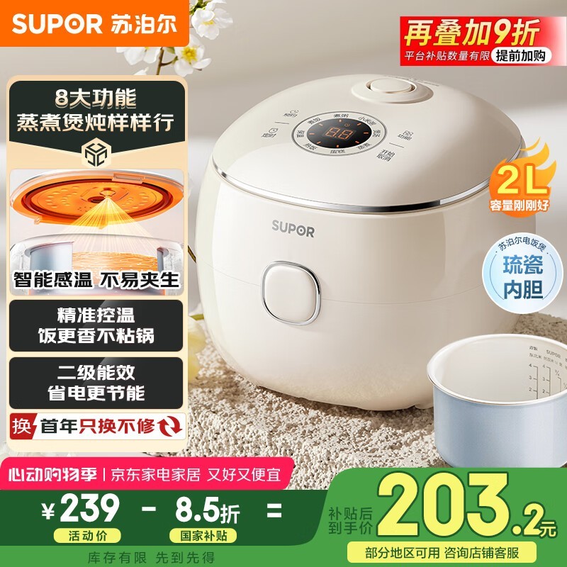 苏泊尔迷你电饭煲269元特惠,实付212元