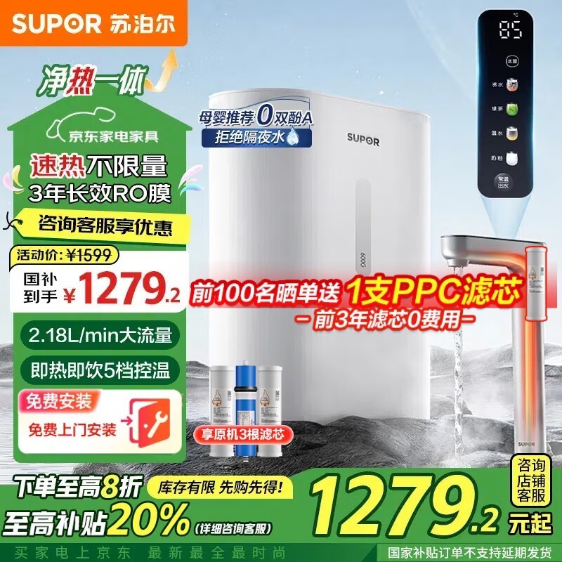 苏泊尔600G即热净水器直饮一体机家用反渗透
