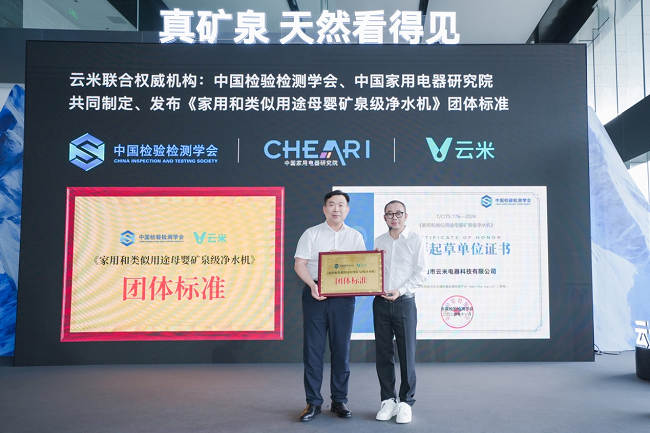 发布会上,云米科技还展示了近期携手中国检验检测学会、中国家用电器研究院共同制定的行业首个《家⽤和类似⽤途⺟婴矿泉级净⽔机》团体标准,云米昆仑4矿泉净水器也成为行业首台母婴矿泉级净水机认证的产品。