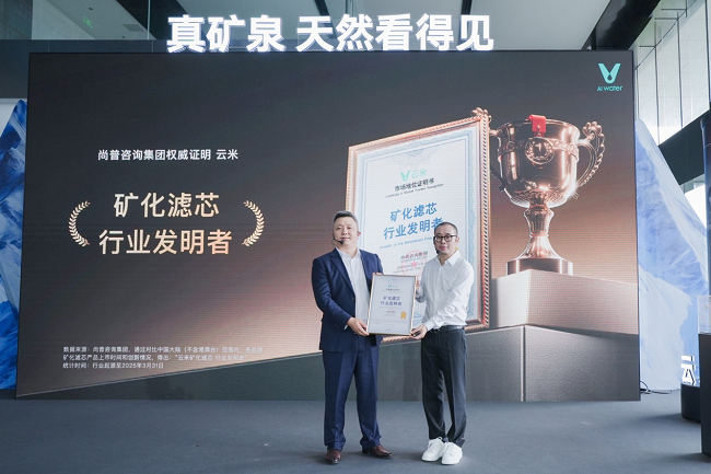 发布会现场,第三方权威机构尚普咨询集团为云米科技颁发 “矿化滤芯行业发明者” 与 “滤芯全国销量领先” 的行业认证资格证书。尚普咨询在行业调研与认证领域颇具权威性,此次认证,一方面彰显云米在矿化滤芯技术上的开创性,另一方面也体现云米滤芯在市场上的领先地位与卓越竞争力,获得消费者广泛认可,这两项认证是云米品牌实力的有力见证。