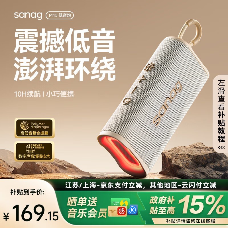 塞那M15蓝牙音箱震撼低音,便携防水设计,京东限时优惠仅174元