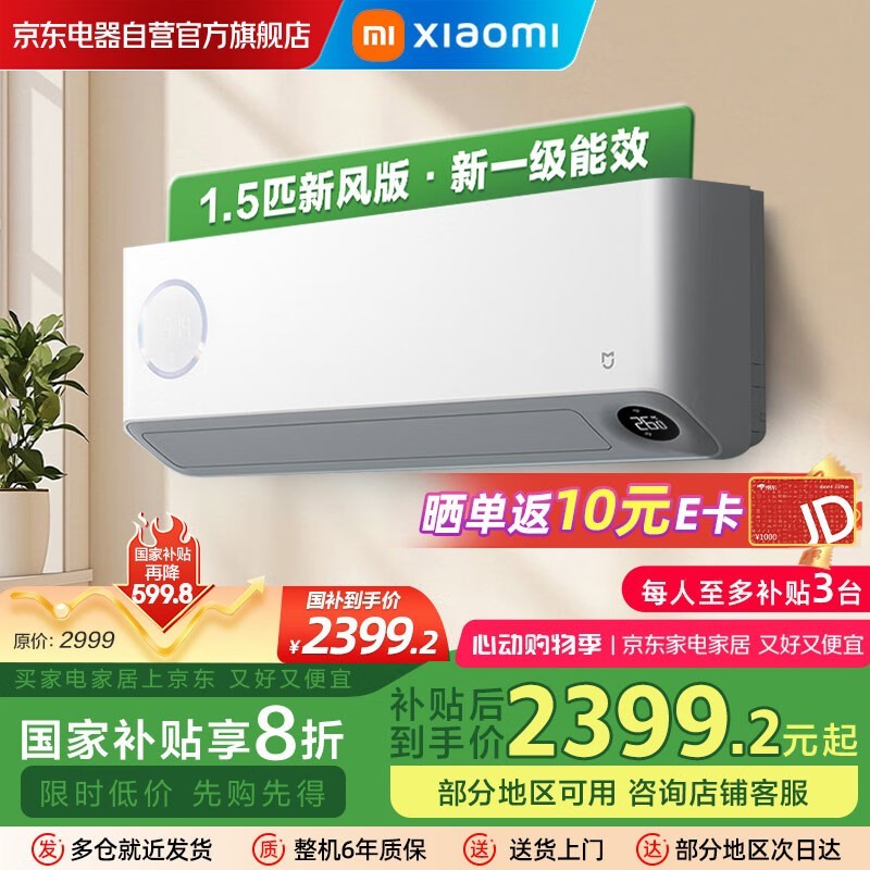 小米空调1.5匹新风挂机,节能静音冷暖双用