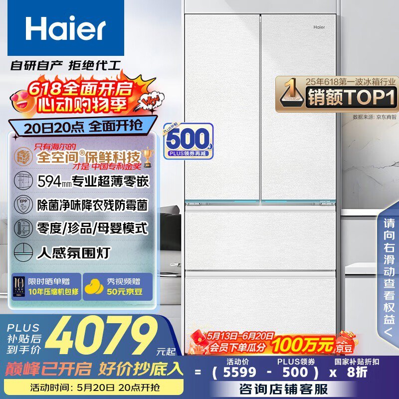 海尔485升超薄嵌入式冰箱限时特惠5099元