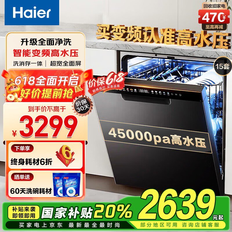 海尔晶彩系列洗碗机15套大容量,强劲清洁省心省电