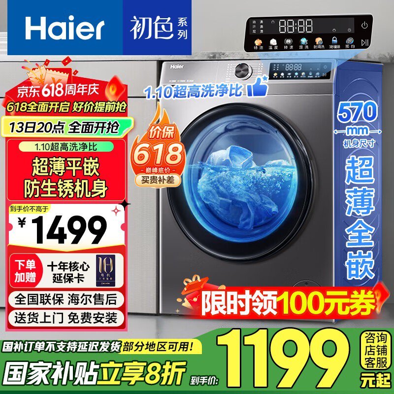 海尔滚筒洗衣机EG100MATE35S 10kg大容量直降500元