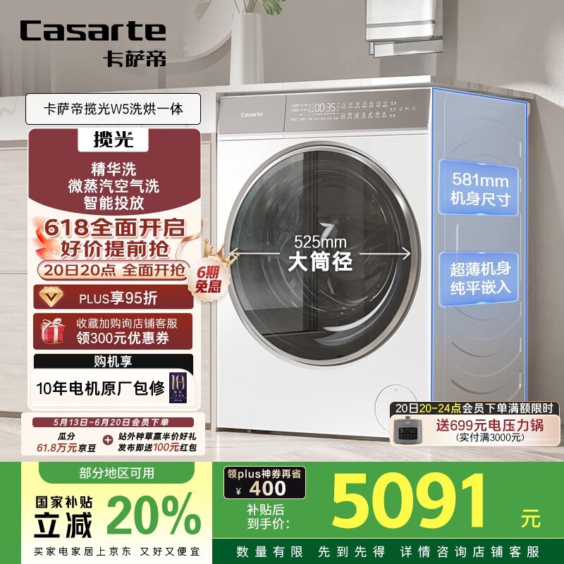 卡萨帝揽光W5滚筒洗衣机京东特惠