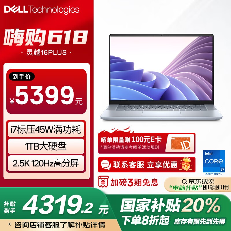 戴尔灵越16PLUS-7640高性能轻薄本限时特惠
