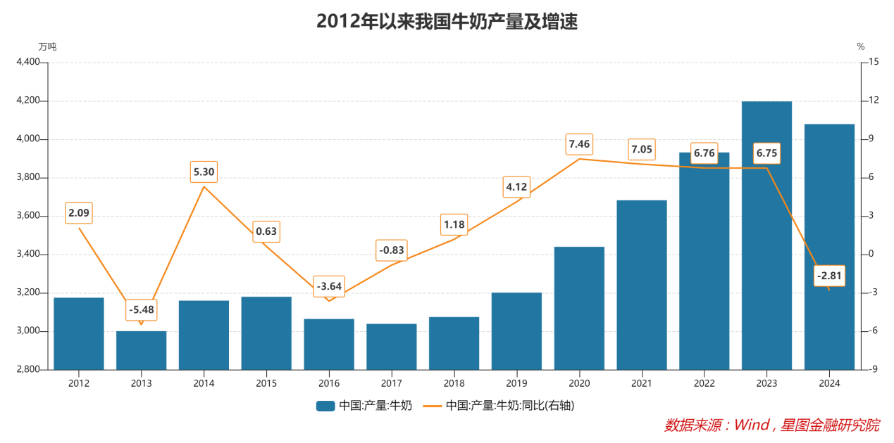 需求侧,乳制品作为优质蛋白质、钙质和维生素的重要来源,是居民膳食结构中不可或缺的组成部分。根据联合国粮农组织数据,全球人均乳制品消费量达126公斤/年,而我国当前人均消费量仅42.4公斤(2022年数据),显著低于国际水平,这意味着我国基础乳制品的需求仍存在较大刚性增长空间。尤其在老龄化加剧和国民健康意识提升的背景下,叠加政策端着力提高中低收入群体收入,以及生育补贴政策的相继落地,基础白奶、婴儿配方奶粉等需求增长可期。