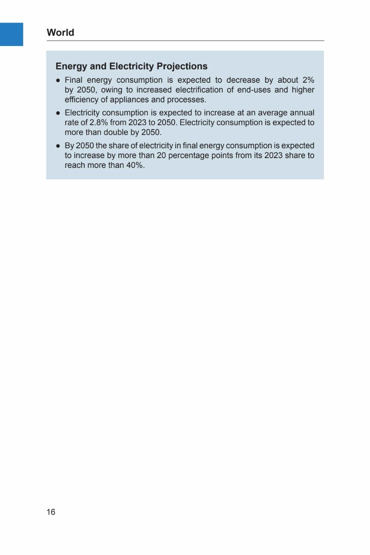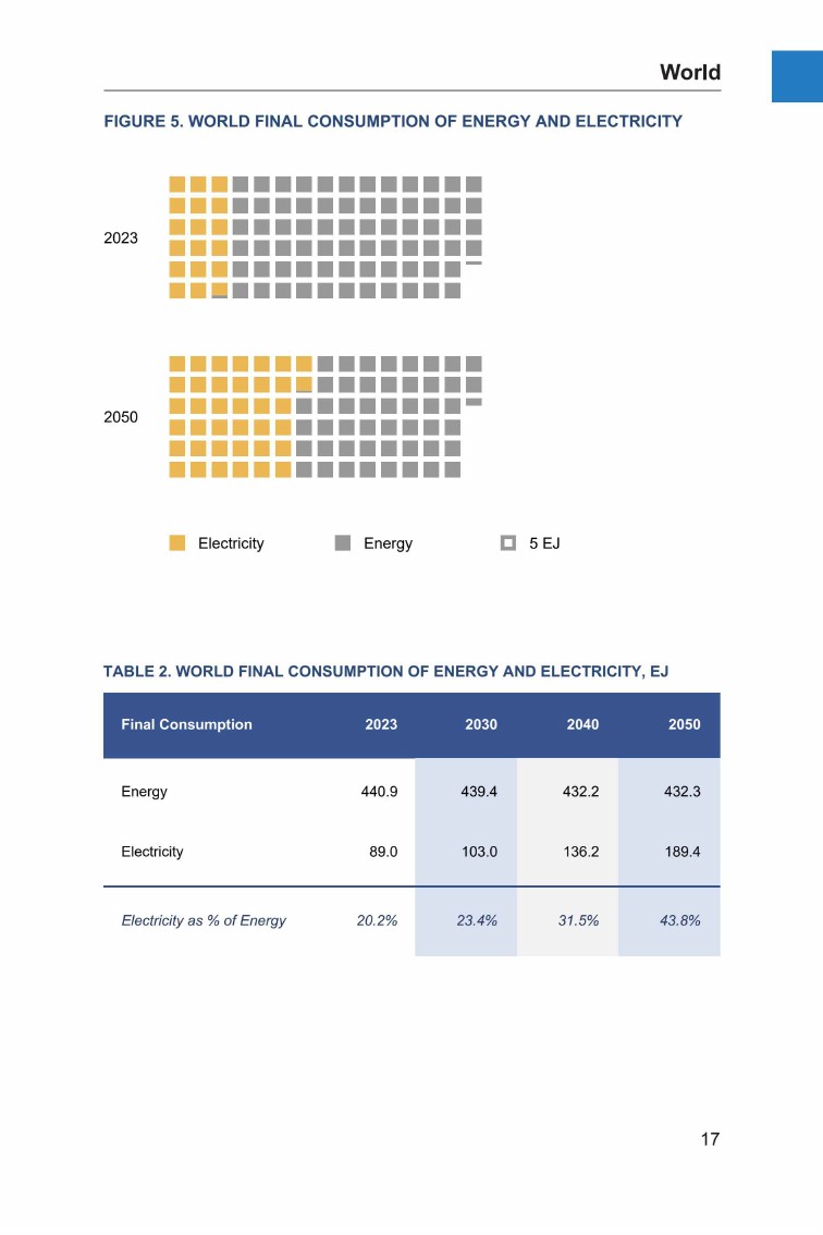 预计2050年,全球终端能源消费量将下降约2%,而发电量预计将增长一倍以上。