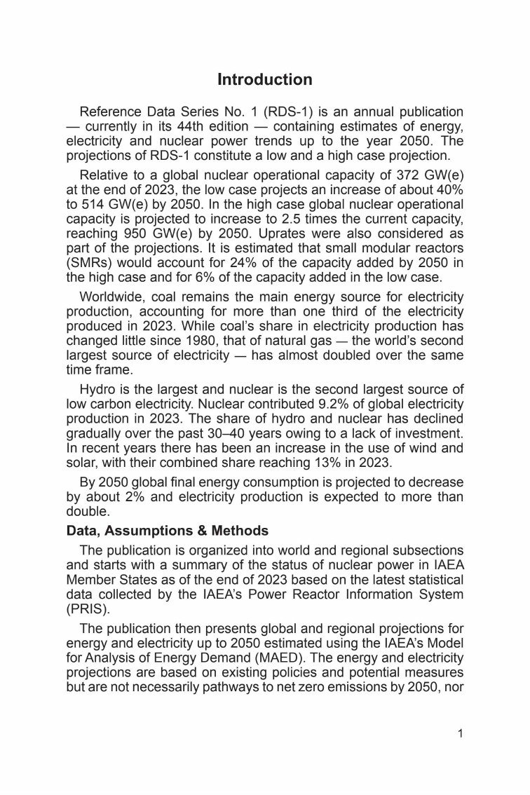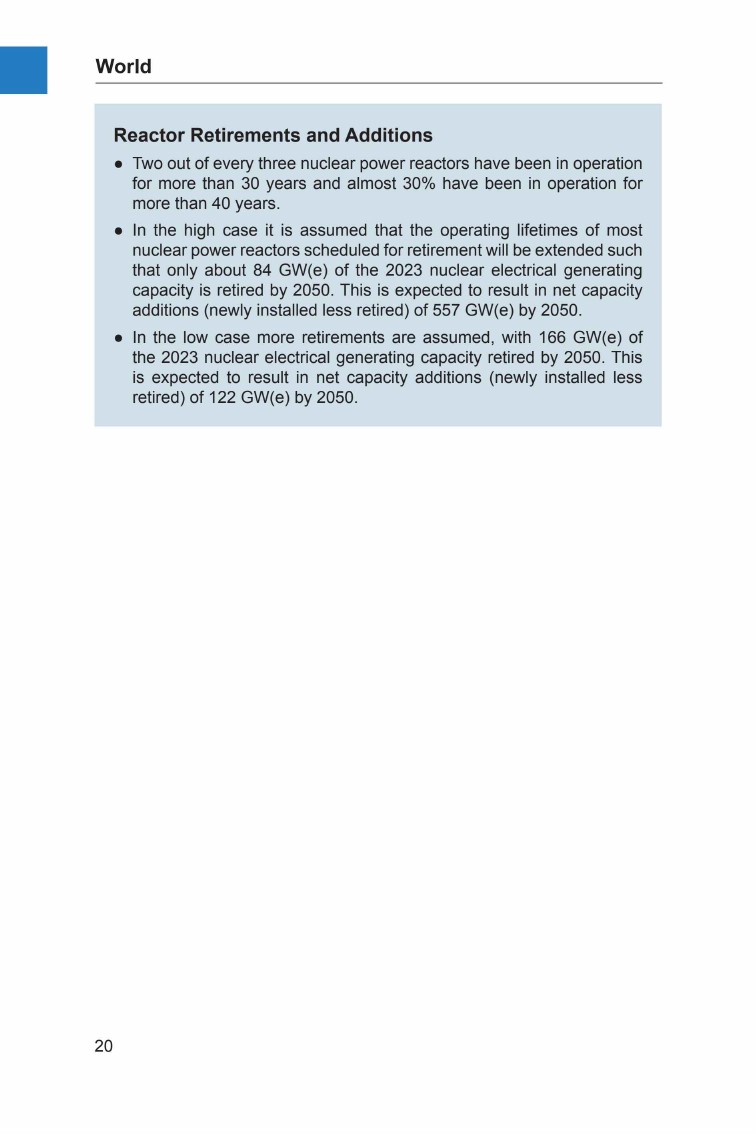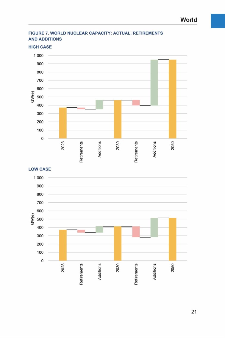 国际原子能机构(IAEA)发布了年度出版物(目前为第44版)“能源、电力和核能估计2050”,预测截至2050年的能源、电力和核电趋势,提供低值和高值两种情景方案。