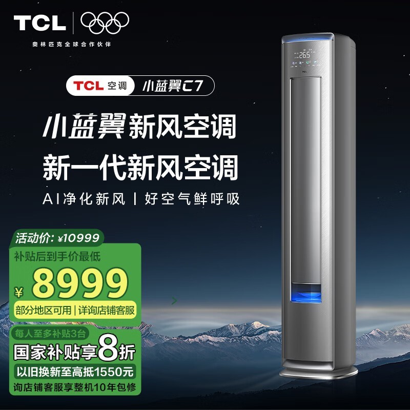 TCL小蓝翼C7空调3匹,原价10999现8955