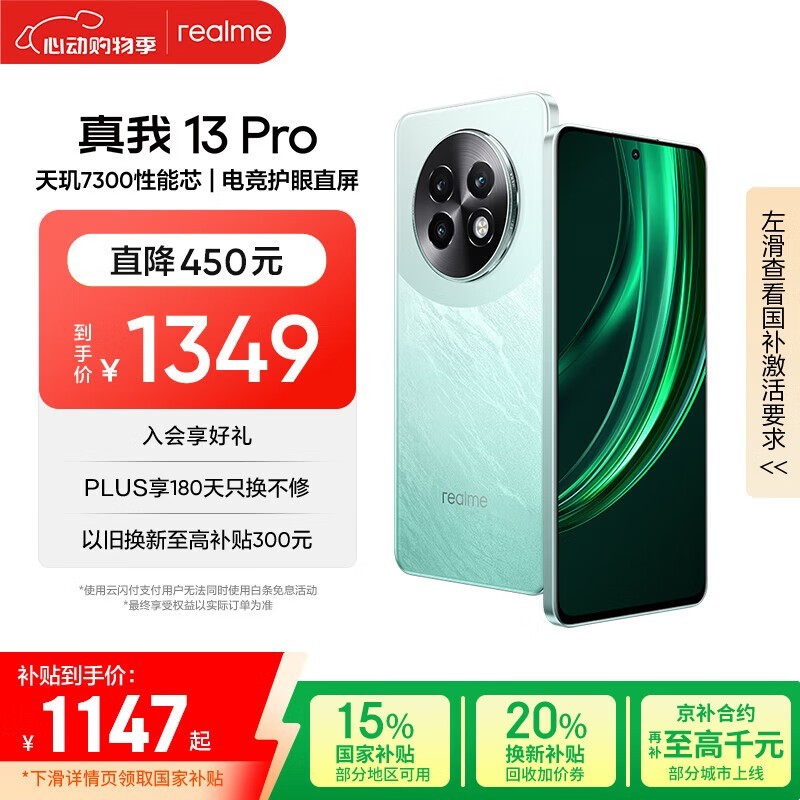 realme 13 Pro 5G手机踏浪青12GB+256GB限时特惠价1319元