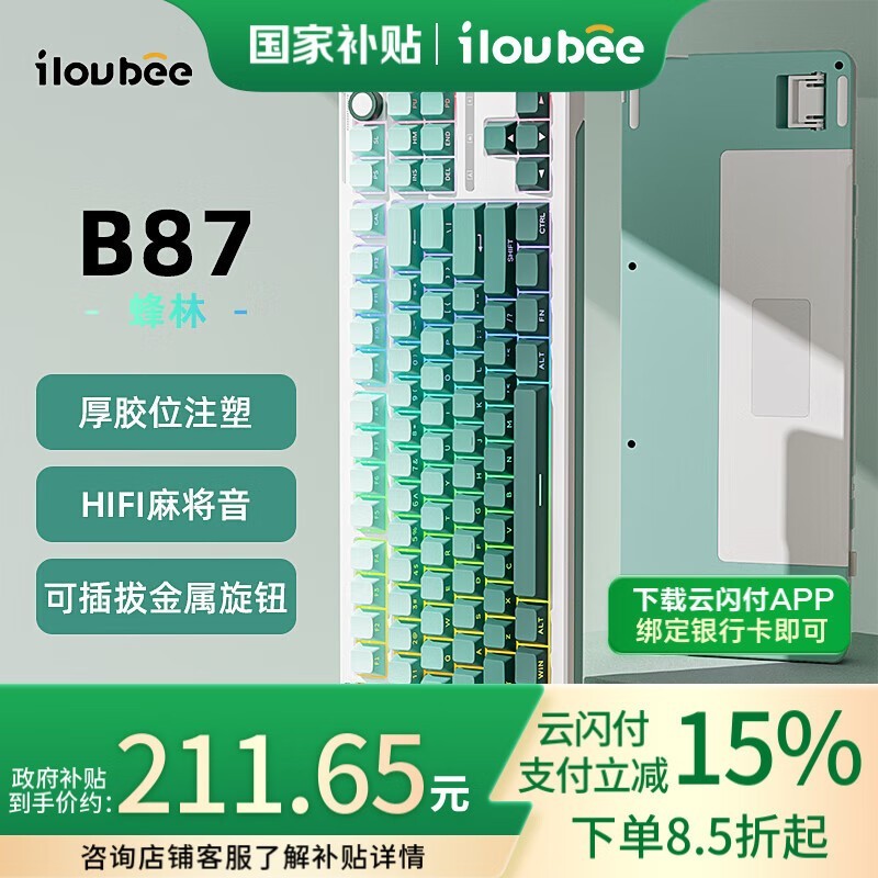 艾卢比ilovbee B87机械键盘京东活动价249元