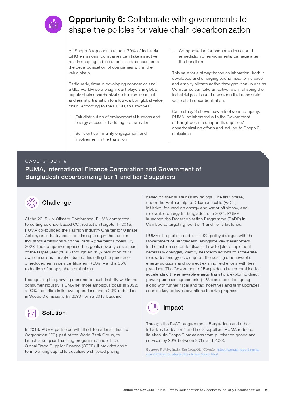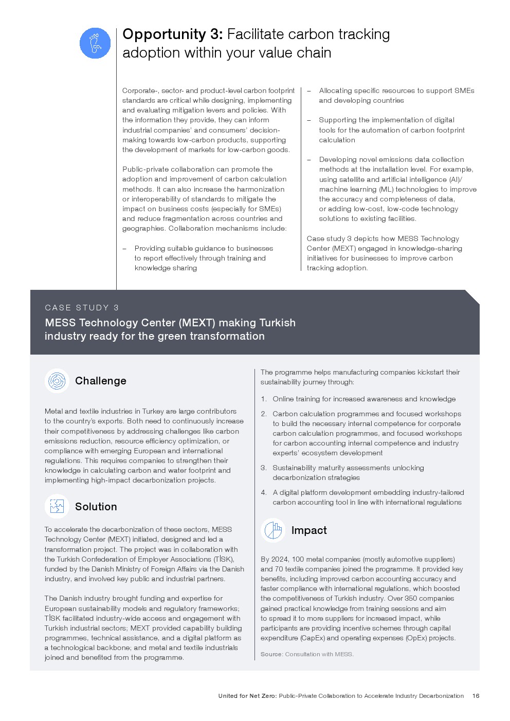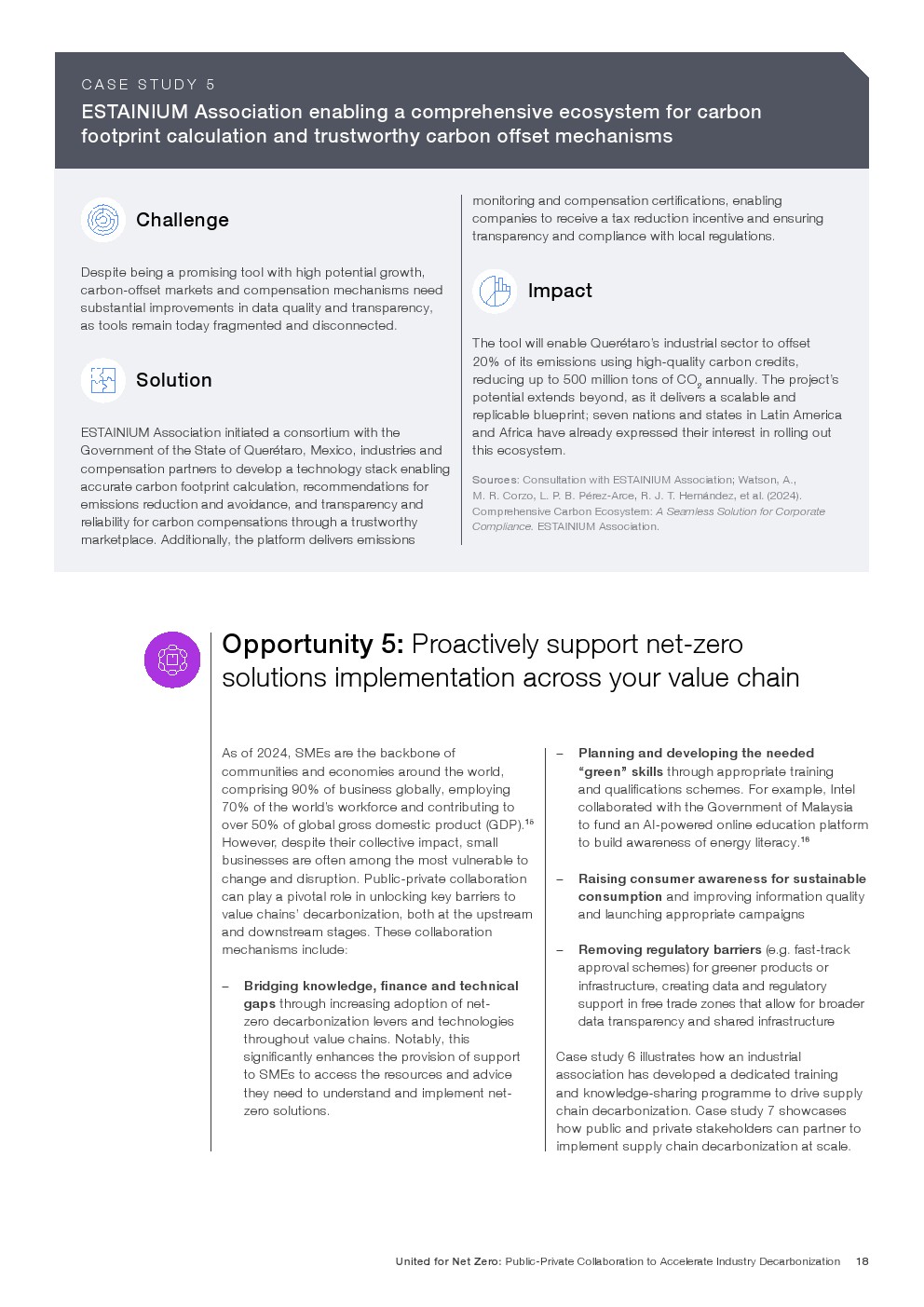 白皮书展示了全球范围内的最佳实践和成功合作。这些案例研究在两个行动层面提供了切实的范例,并解决了企业在实现净零排放过程中面临的四大主要障碍:获得支持、准确计算排放量、实施减排措施以及鼓励绿色业务增长。
