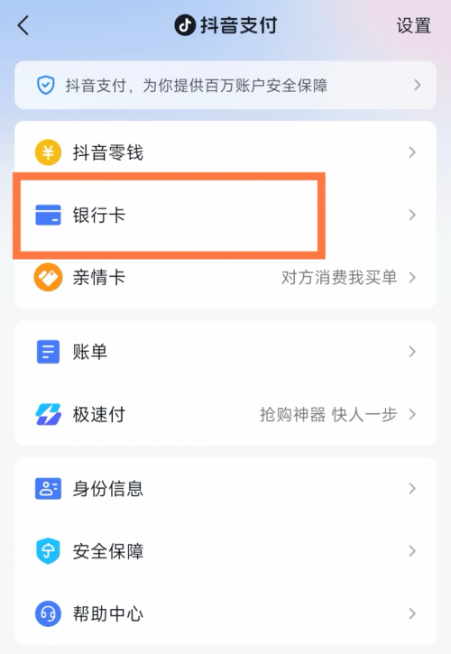 2,选择银行卡管理:在抖音支付界面中,点击"银行卡"选项