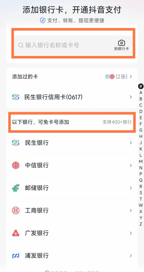 2,银行卡选择:抖音支持绑定400+银行,与大部分国内银行的储蓄卡和信用卡,建议选择常用的一类账户银行卡,避免因二类账户限额影响使用。