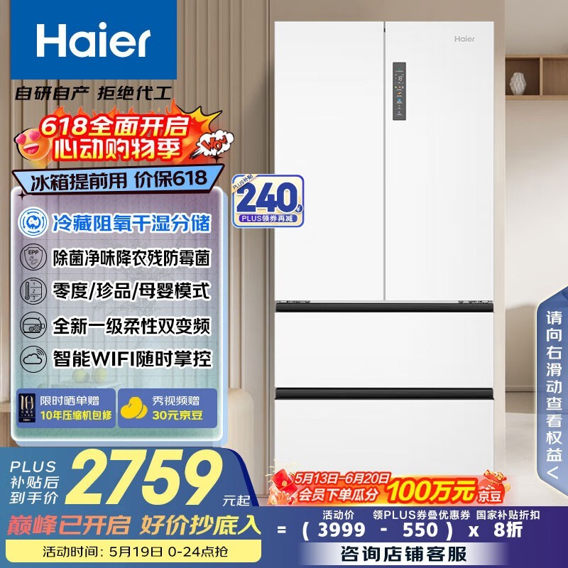 海尔510L法式冰箱限时特惠2100元