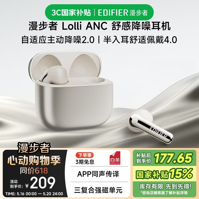 漫步者Lolli ANC蓝牙耳机189元京东热销