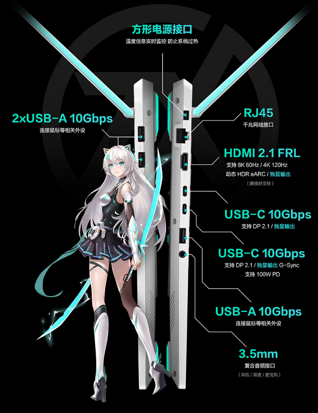 天选6 Pro锐龙版的全新模具不仅带来了新的外观视觉,其在易用性及体验上也充分为玩家考虑。标配全尺寸方向键与240Hz超大触控板优化操控;3个USB-A 10G接口,2个USB-C 10G接口且均支持DP 2.1协议,满足多设备扩展需求;贯穿式后置出风设计避免热流烘手;新增FHD+IR双摄模组支持人脸识别功能,保障隐私安全。