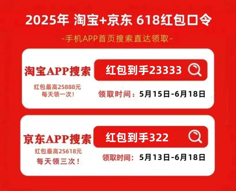 首先,划重点!2025年最新的京东618红包口令是「红包到手322」,天猫/淘宝618红包口令是「红包到手23333」记得每天去领,领的红包大小和你搜索的什么口令有关的!