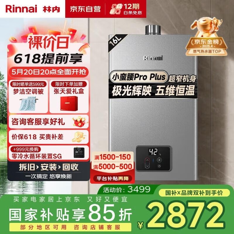 林内16升极光灰燃气热水器限时特惠,恒温舒适