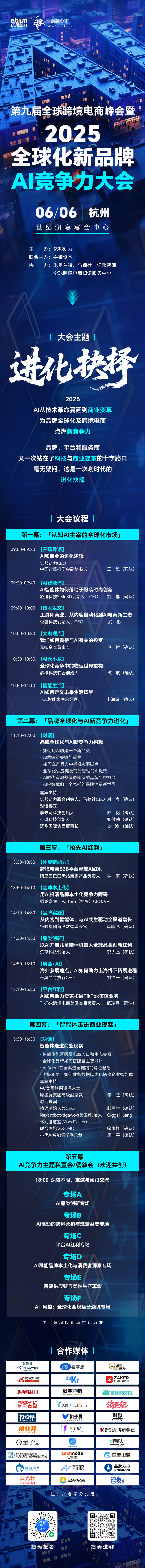 AI走进商业现实,品牌和跨境电商打头阵,2025全球化新品牌AI竞争力大会,6月6日定档杭州。本次大会以“进化抉择”为主题,由亿邦动力与嘉御资本联合主办。欢迎关注:
