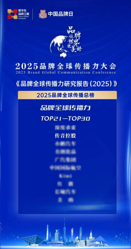 近日,2025品牌全球传播力大会在上海举行,新华社在会上发布了《品牌全球传播力研究报告(2025)》。传音控股凭借突出的全球品牌影响力和本地化战略成功入选“2025品牌全球传播力总榜”,排名第22位。