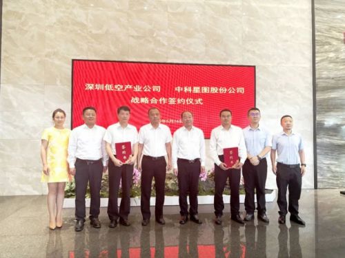 5月16日,中科星图股份有限公司(以下简称 “中科星图”)与深圳低空产业发展服务有限公司(以下简称 “深圳低空产业公司”)在深圳举办战略签约仪式,是继中科星图维天信助力深圳低空气象服务中心建设之后又一重大合作。双方将着力提升深圳低空产业的科技水平与服务能力,立足深圳,辐射粤港澳大湾区,共同致力于推动大湾区低空经济高质量发展。深圳市机场(集团)有限公司党委副书记、总经理林小龙,深圳低空产业公司执行董事、总经理沈坚,中科星图党委书记、总裁邵宗有,中科星图高级副总裁、星图低空云董事长陈伟,中科星图副总裁、星图慧安总裁闫庚翔,中科星图副总裁、星图智慧高级副总裁郭国龙等出席签约仪式。沈坚和陈伟分别代表深圳低空产业公司和中科星图进行签约。