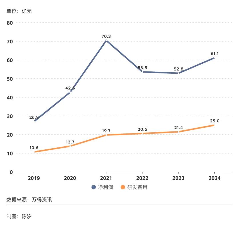 电机行业看似原始,但研发投入却不低,并且逐年稳步增加。图2是2019年以来电机行业的净利润总额和研发费用总额。2019年到2024年,研发费用复合增长率为10.3%。