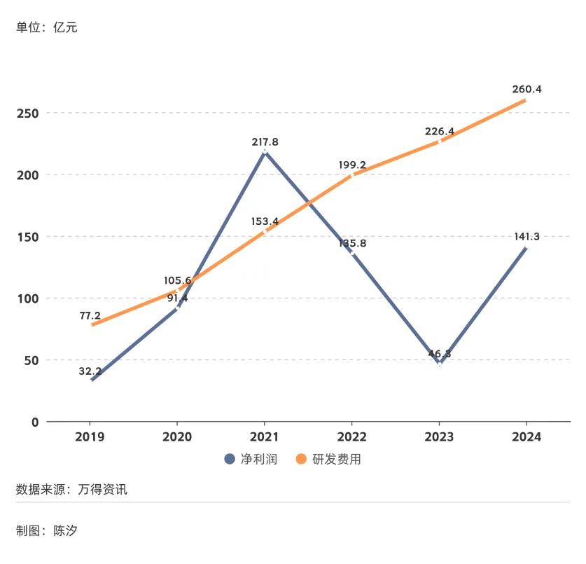 图3: 行业净利润、研发费用(2019年-2024年)