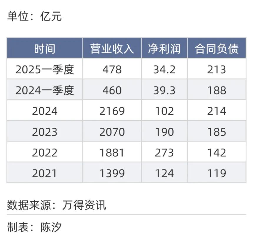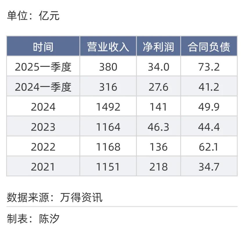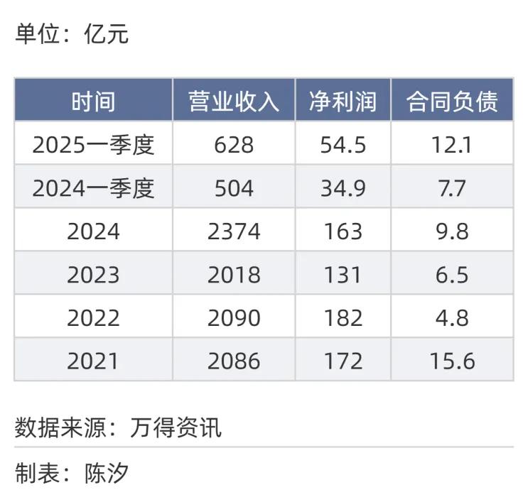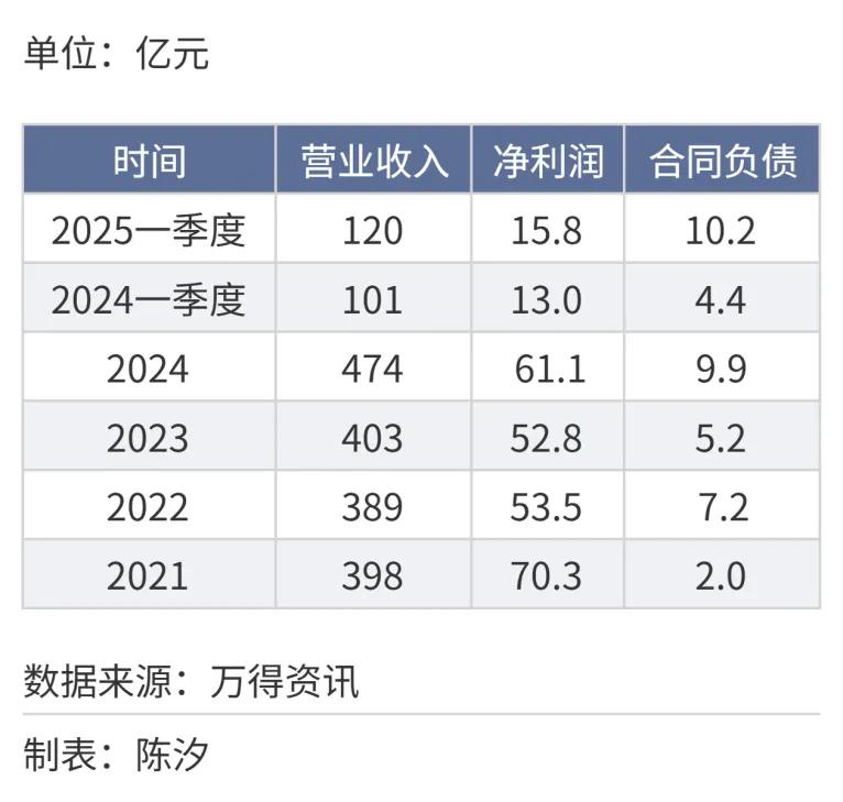 表3: 电机行业营收、净利润、合同负债(2021年-2025年)