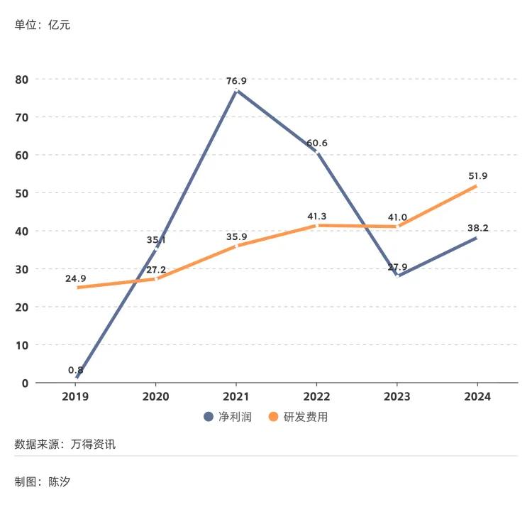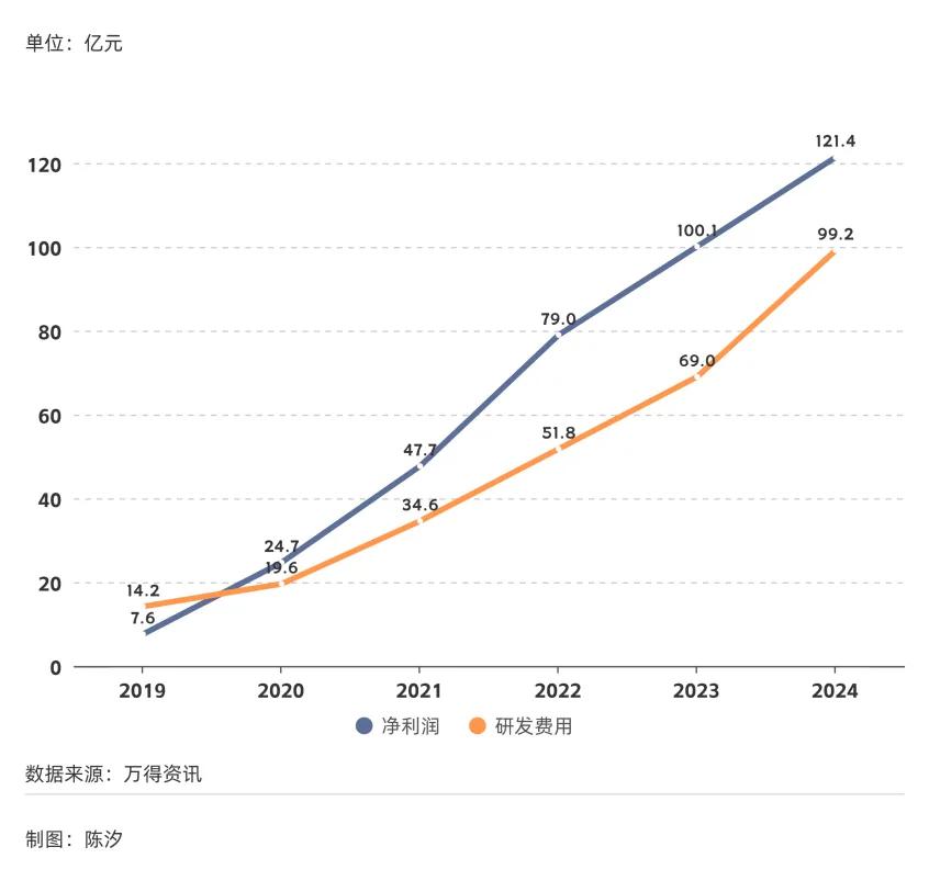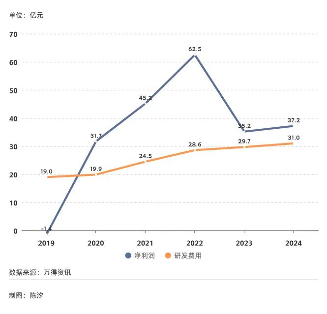 图6: 芯片制造设备行业的净利润、研发费用(2019年-2024年)