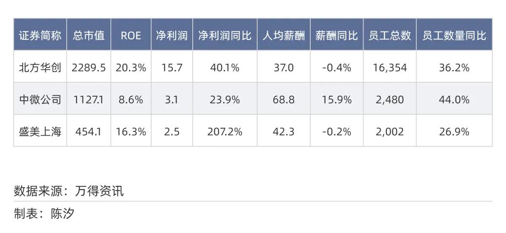 注:ROE、人均薪酬、员工总数为2024年数据,净利润为2025年一季度数据;人均薪酬单位为万元,总市值、净利润单位为亿元。