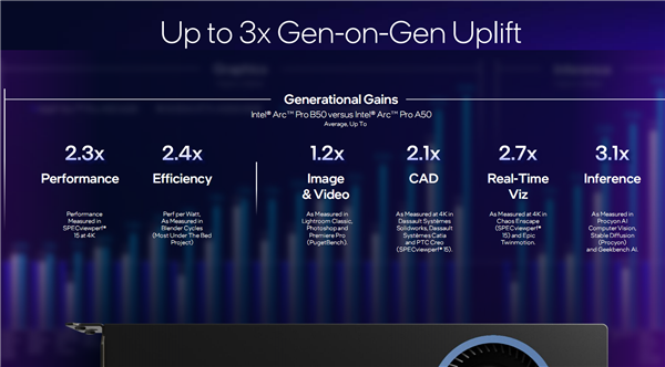 现在,Intel二代锐炫B系列显卡刚刚登场不到半年,新一代锐炫Pro B系列也来了!