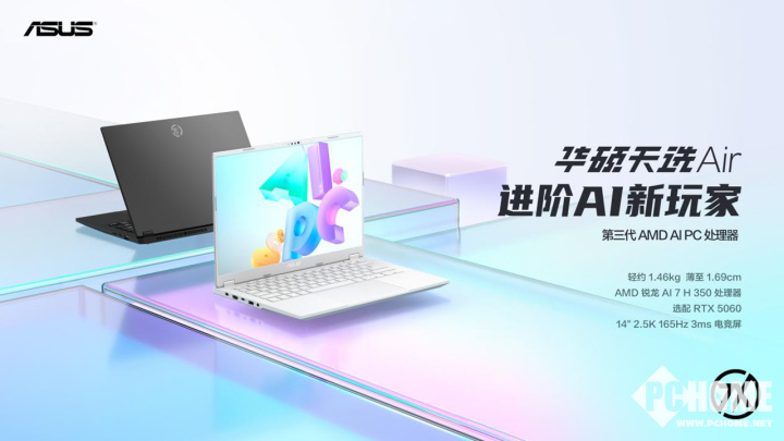 5月19日晚19:00,华硕天选2025新品发布会,多款实力笔记本新品正式发布。其中,14英寸轻薄全能本标杆----华硕天选Air 2025正式发布,同时在各电商上架并开启预约,6月8日晚20:00开售。天选Air 2025延续2024款的优秀口碑,在经典模具的基础上,显卡升级至GeForce RTX 5060笔记本电脑GPU,至高配备AMD锐龙AI 7 H 350处理器与32GB+1TB存储组合,更有2.5K 165Hz屏幕、全新冰川散热、73Wh电池、Micro SD卡槽、人脸识别双摄等周边配置,轻约1.46kg薄至1.69cm,诠释“14英寸小钢炮”的全能实力。