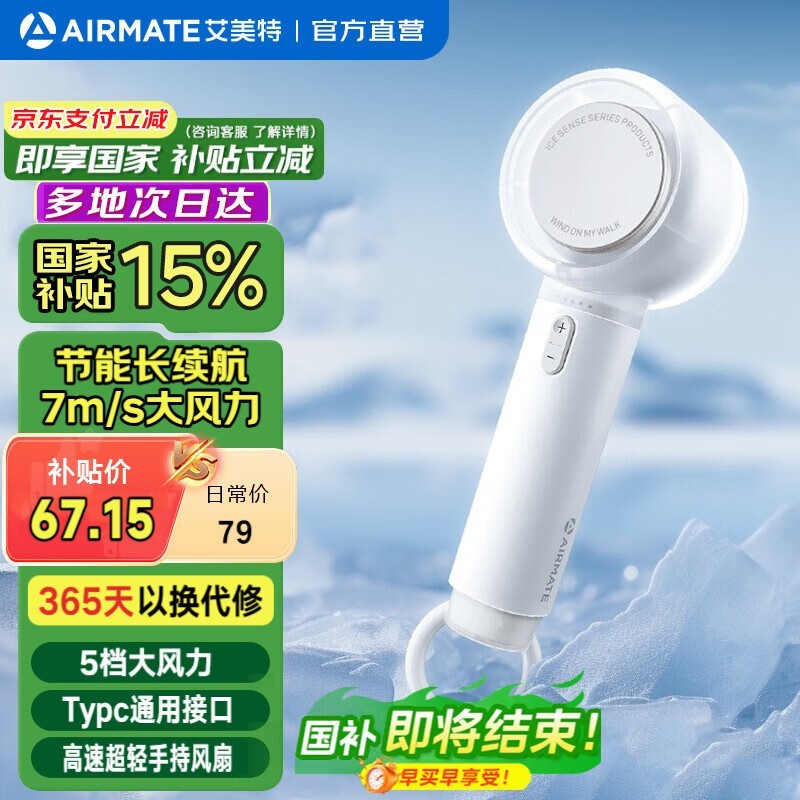 艾美特小风扇手持便携5档劲风6小时续航京东限时抢购