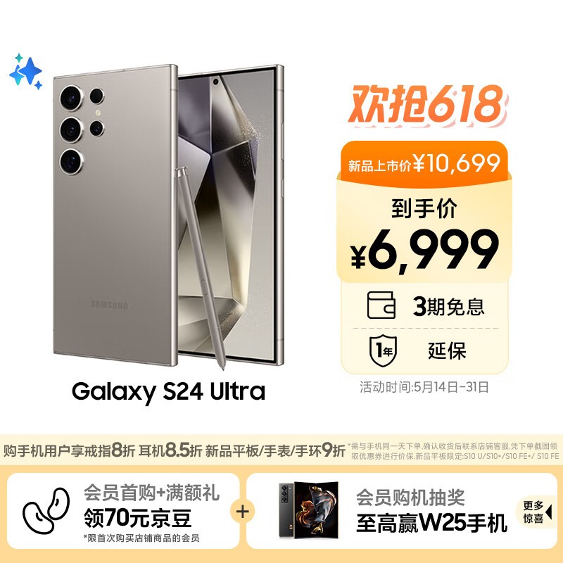 三星Galaxy S24 Ultra 5G手机限时特惠6999元