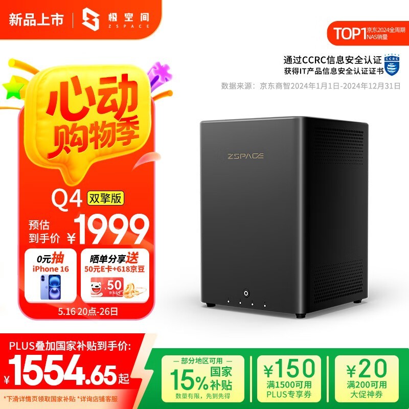 极空间ZSpace Q4双擎版NAS 1546元可入手
