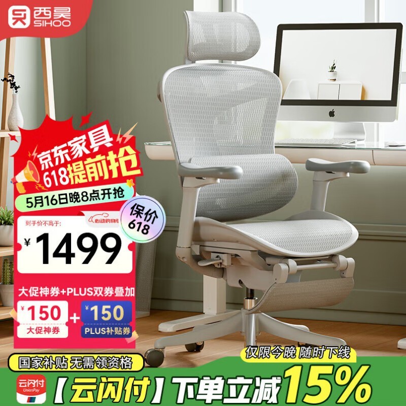 西昊Doro C100云白脚踏款人体工学椅优惠价1129元