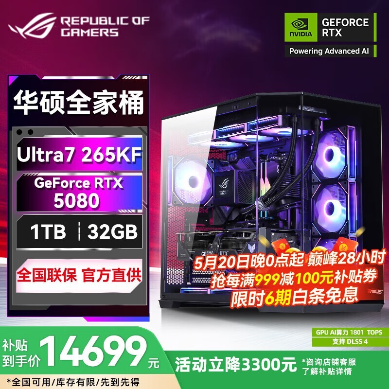 华硕ASUS组装电脑促销,酷睿i9版到手14699