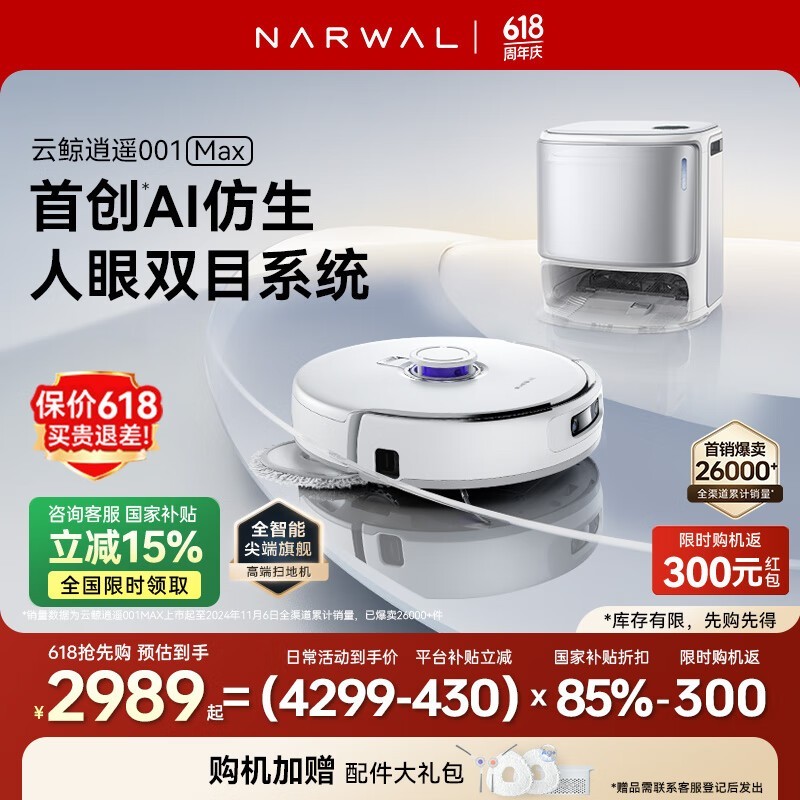 云鲸NARWAL逍遥001 Max扫拖一体机京东大促