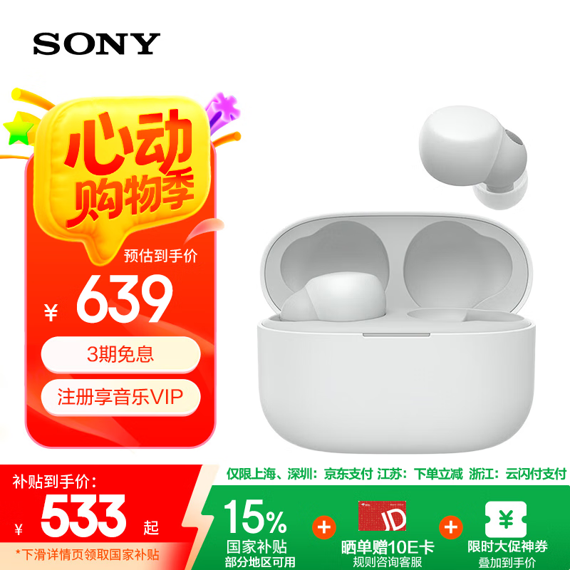 索尼LinkBuds S蓝牙耳机白色优惠价624元