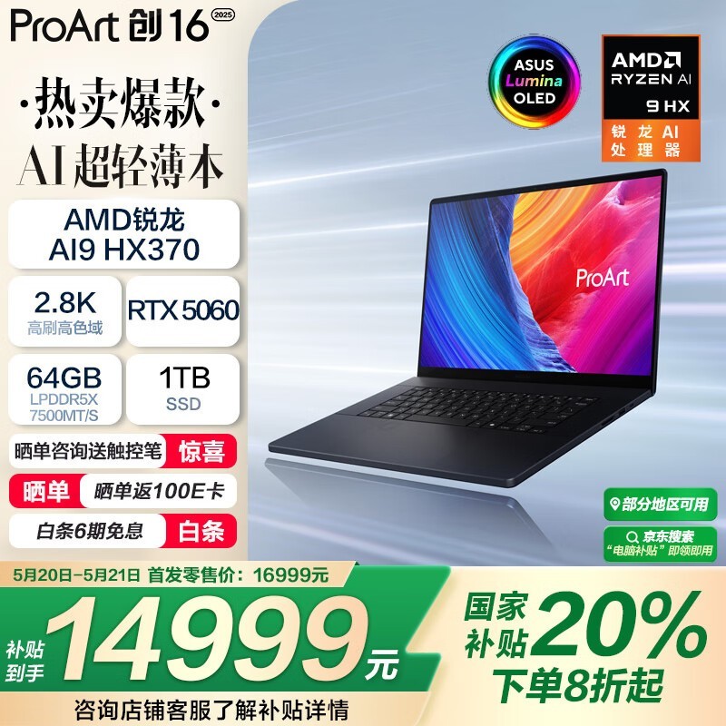 华硕ASUS ProArt创16 2025京东预约,国补立减20%