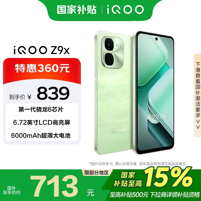 iQOO Z9x 5G手机京东促销,PLUS会员低至707元