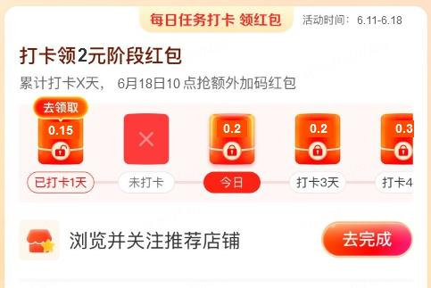 ➢ 每日打卡领红包: