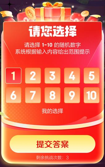 活动会在不同的时间节点,开启“锦鲤数字红包”玩法,请随时关注活动提示。活动期间用户可参与猜数字玩法,每人 3 次机会,猜中锦鲤数字后即可获得领取额外奖励的机会,可随机获得京东红包、品类东券或店铺券等奖励。猜错后会缩小锦鲤数字的范围并提示用户,如果用户3次机会均未猜中,则无法获得任何奖励。红包奖励限量,发完即止,建议用户在活动节点整点,准时参与活动。具体加码节点获取路径