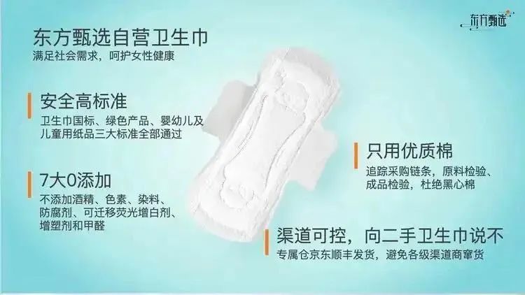 3月20日,俞敏洪掌舵的东方甄选在2025年自营新品发布会上,也对外宣布其自营卫生巾产品最快将于今年暑假面世,该项目在2024年年底便正式立项,目前产品已经定型。据东方甄选产品发言人董政介绍,东方甄选的卫生巾产品通过卫生巾国标、绿色产品、婴幼儿及儿童用纸品三大安全标准,承诺7个“0添加”(不添加酒精、色素、染料、防腐剂、可迁移荧光增白剂、增塑剂和甲醛)。