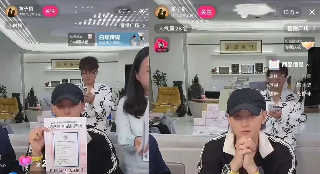 黄子韬与遥望科技谢如栋一起带货朵薇卫生巾