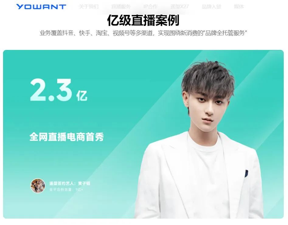 2021年7月,黄子韬联手遥望科技入局直播电商,并成立了杭州望望龙网络科技有限公司。股东名单显示,黄子韬通过永恒星龙娱乐集团持股44%,杭州遥望网络科技有限公司(遥望网络)持股46%。同年10月,黄子韬以望望龙董事长的身份首次在快手进行带货直播,官方数据显示,这场直播GMV为2.3亿元。